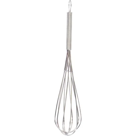 Metaltex-visp, 25 cm lång, tillverkad av rostfritt stål. Med trådhandtag och upphängningsögla.