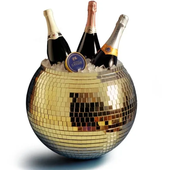 Den funkiga Gold Disco Ball Ice Bucket erbjuder en glamorös twist på traditionella ishinkar, med en skimrande, guld disco ball-inspirerad design som verkligen sticker ut. Med sin retrochica glitter är denna ishink inte bara funktionell&mdash den är ett riktigt statement piece. Den är perfekt för att kyla dina drinkar samtidigt som den lyfter din festdekoration och hjälper till att skapa en oförglömlig, festlig atmosfär. När ljuset träffar den kastar den gyllene ytan vackra reflektioner, vilket ger extra glöd och elegans till ditt utrymme. Få din fest att lysa med detta iögonfallande och unika tillskott! Den här artikeln är också en bländande present eller en gnistrande touch till vilket rum som helst. Lägg till en gyllene twist till ditt nästa evenemang med vår Gold Disco Ball Ice Bucket!