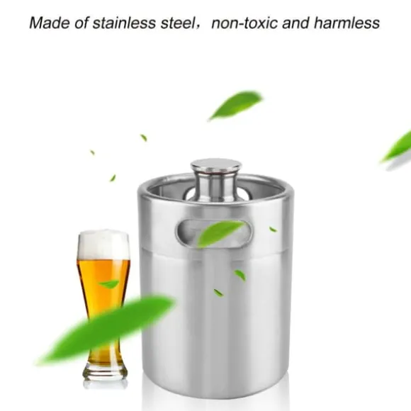 Välkommen till vår butik! Detta är en mycket användbar och praktisk öltunna tillverkad av livsmedelsklassat rostfritt stål, vilket garanterar stabilitet, hållbarhet och rostbeständighet. Den bibehåller kolsyratrycket under längre perioder och håller din öl färsk. Toppen har ett spirallock som sluter tätt, vilket gör den till ett idealiskt tillbehör för hemmavinmakare. Dina drycker håller sig kallare och lagras längre jämfört med glas, utan risk för att de går sönder. För extra bekvämlighet kan du fästa en kran på den, så att du kan skapa din egen kolsyrade eller platta hantverksöl. Finns i tre storlekar: 2L (ca 13,5 x 17,5 cm), 3,6L (ca 13,5 x 29,5 cm) och 5L (ca 17,8 x 26,5 cm). Produkten är helt ny, silverfärgad och inkluderar en mini-öltunna per beställning. Nöjdhet: Våra kunder är vår högsta prioritet. Om du upptäcker några produktproblem efter att du mottagit varorna, såsom skador eller felaktig mängd varor, vänligen kontakta säljaren omedelbart. Vi gör vårt bästa för att ge dig tillfredsställande kundservice.
