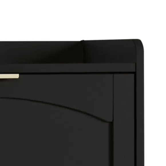 Modern & elegant design: Skoskåpet kombinerar stilren svart finish med en lätt rundad form, inspirerad av klassisk design, och ger hallen ett sofistikerat utseende.
