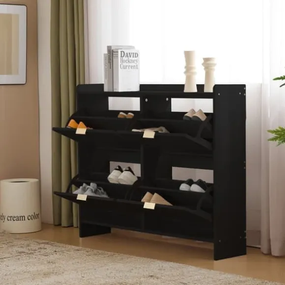 Platsbesparande förvaring: Med 4 fällbara luckor erbjuder skåpet gott om utrymme för olika typer av skor. Perfekt för smala korridorer och mindre entréer.