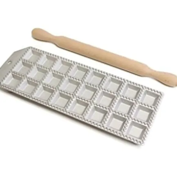 Upptäck Calder fyrkantiga ravioli-form med träroll. Detta pack med 24 flerfärgade aluminiumdelar med måtten 26 x 11 x 10 cm och diameter 24 cm gör att du enkelt kan skapa läckra ravioli. Njut av en unik matlagningsupplevelse med denna kvalitetsform.