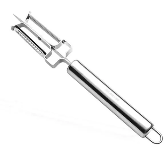 Rostskärare i rostfritt stål TD® för frukter och grönsaker. Idealisk för att enkelt ta bort skalet från morötter, rädisor, gurkor och mer. Praktisk och snabb, denna köksredskap gör matberedningen enkel och effektiv.