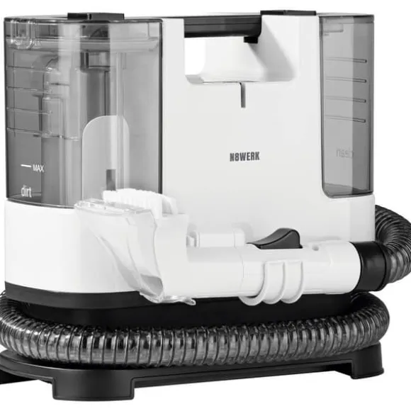 Njut av den behagliga känslan av renlighet i alla vinklar av din lägenhet. Den kompakta och bärbara N8WIK våtdammsugaren Portable Clean övertygar med en stark spray- och sugeffekt för att ta bort fläckar och svår smuts. Spraya det smutsiga kudden, kudden, sätena eller mattorna med rent vatten och ta bort fläckar, damm och skugga snabbt och exakt. Tack vare den starka sugeffekten hos 400-wattmotorn förblir bara en lätt fuktig yta som snabbt torkar så att du snart kan ta plats på soffan igen. Tack vare den flexibla 1,2 m slangen och den 5 m långa kabeln kan du med tvättdammsugaren hålla rent även i svårtillgängliga områden i ditt hem eller i bilen. Den kraftfulla våtdammsugaren med två-tank-system samlar även in dold smuts i många hörn och vinklar – detta syns när du efter rengöringen fräschar upp smutsvattentanken och fräschar upp dig till fräscha, rena dynor och mattor. Efter rengöringsprocessen kan du enkelt och platssparande förvara tvättdammsugaren Portable Clean i t.ex. köksskåpet. På så sätt kan den diskret och diskret vänta på nästa insats. Dra in en ny typ av renlighet hos dig – med våtdammsugaren för stoppning. OBS! Vi beklagar att vi inte har hunnit översätta denna produkttext. Texten nedan är maskinöversatt från tyska.