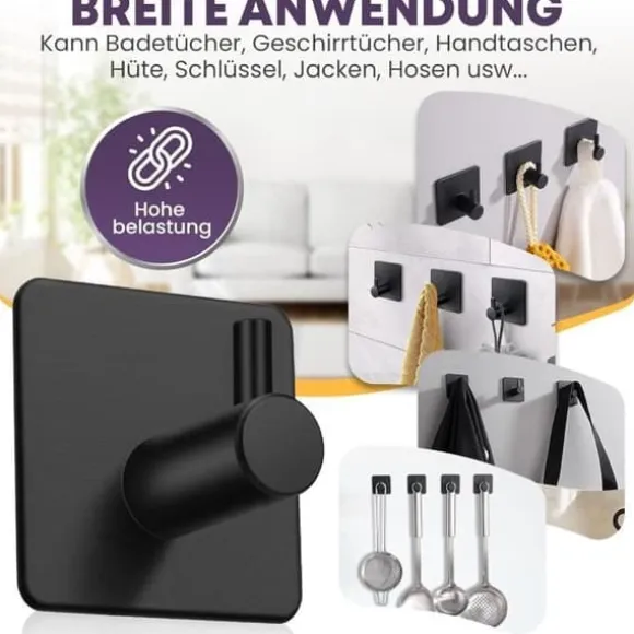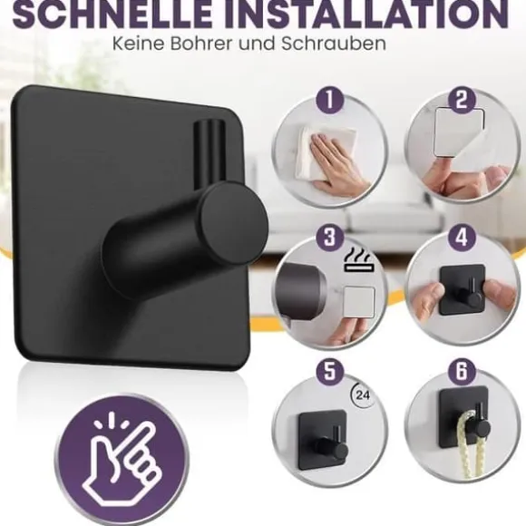 Enkel installation ingen borrning krävs. Unser Edelstahlhandtuchhaken lässt sich problemlos auf gltten Oberflächen in Sekundenschnelle aufkleben. Stark vidhäftning Limkrokar använder ett starkt lim som bildar en pålitlig, stadig anslutning till ytan. Högkvalitativt rostfritt stål tillverkat av rostfritt stål. Slitstark, robust, rost- och korrosionsbeständig handdukskrok. Bibehåller ett elegant, polerat utseende även i fuktiga miljöer. Flexibel användning i badrummet, köket, garderoben och De självhäftande krokarna är perfekta för att hänga upp handdukar, förkläden, väskor, nycklar med mera. Borttagning utan rester Den borrfria kroken kan enkelt tas bort utan att lämna några märken eller skador. Värm helt enkelt ytan med en hårtork och ta bort den.