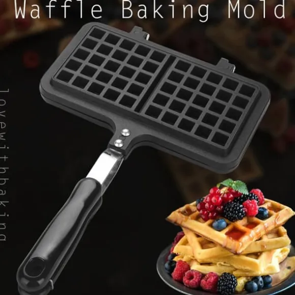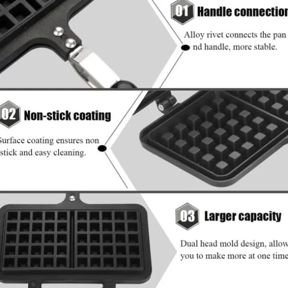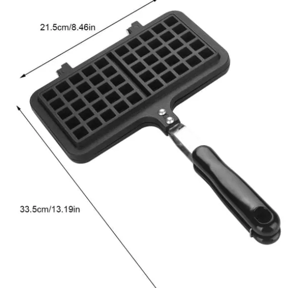 Välkommen till vår butik! Detta verktyg för våffelbakning är tillverkat av högkvalitativ aluminiumlegering, vilket säkerställer att det är säkert, robust och hållbart. Ytbeläggningen ger en non-stick yta, vilket gör den lätt att rengöra. Det långa handtaget är designat för enkelt grepp och värmeisolering, vilket skyddar dina händer från att brännas. Denna våffelbryggare är lätt att använda, ren och har låg strömförbrukning. Med sitt dubbla huvud och större kapacitet kan du göra fler våfflor på en gång och dela dem med din familj. Den är säker att använda på en gasolspis men inte lämplig för en induktionsspis.