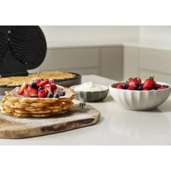 Electa Double-våffeljärnet värms snabbt upp tack vare sin effekt på 1200 watt, så att du kan börja grädda direkt. Med den justerbara temperaturen kan du välja mellan fem olika gräddningsnivåer för att få precis den krispighet och gyllene färg du önskar. Den höga temperaturen säkerställer att våfflornas yta blir jämnt krispig och vackert färgad. De keramiska non-stick gräddningsytorna gör rengöringen enkel, vilket gör att järnet håller sig i gott skick länge.