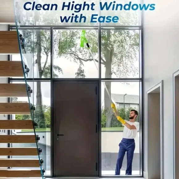 Det robusta teleskopskaftet når upp till 3,13 meter, perfekt för höga fönster, duschväggar, bilar och andra svåråtkomliga ytor både inomhus och utomhus.