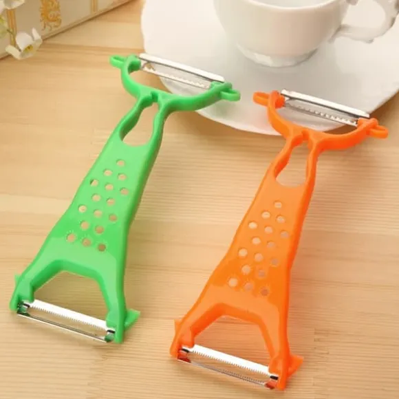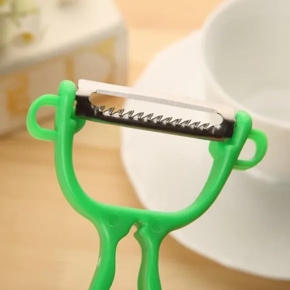 Detta 2-i-1 skalset kombinerar två bladtyper – ett rakt och ett räfflat – vilket gör det enkelt att både skala och strimla frukt och grönsaker. Du kan justera tjockleken genom att ändra trycket med handen, för perfekta resultat varje gång.