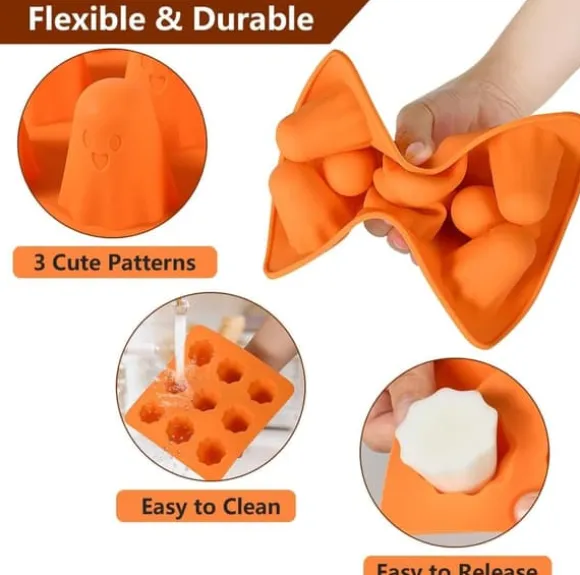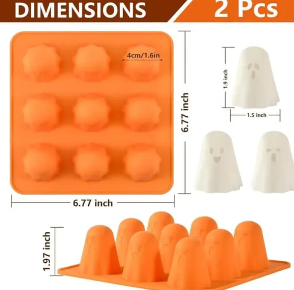 2-pack Halloween-spökformar i silikon med totalt 18 hål. Varje spökfigur är ca 3 cm hög. Tillräckligt antal för alla dina dagliga bakbehov och DIY-projekt.