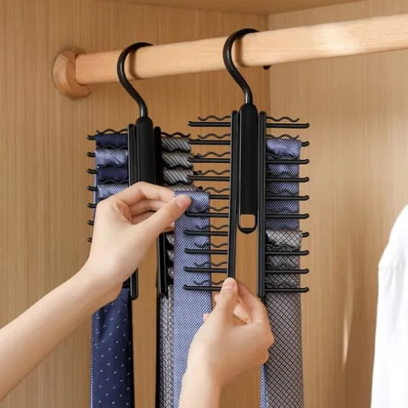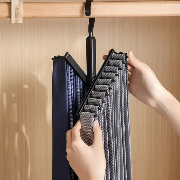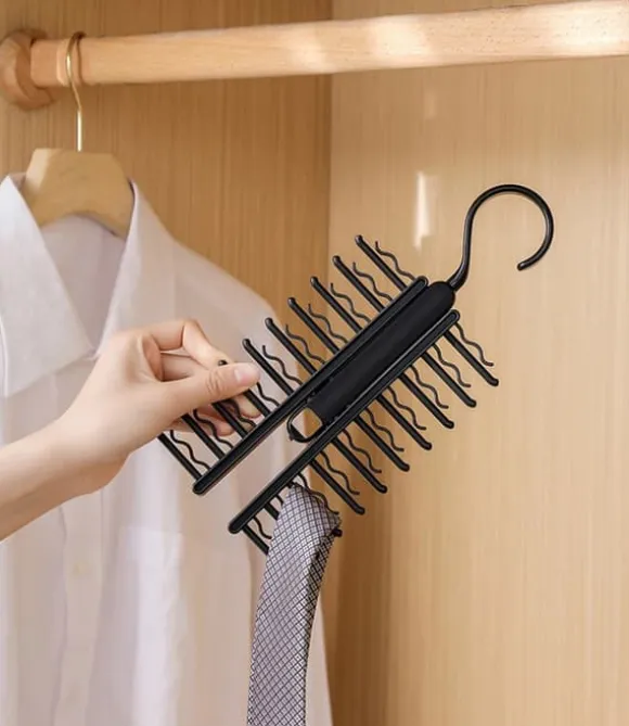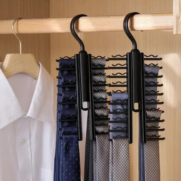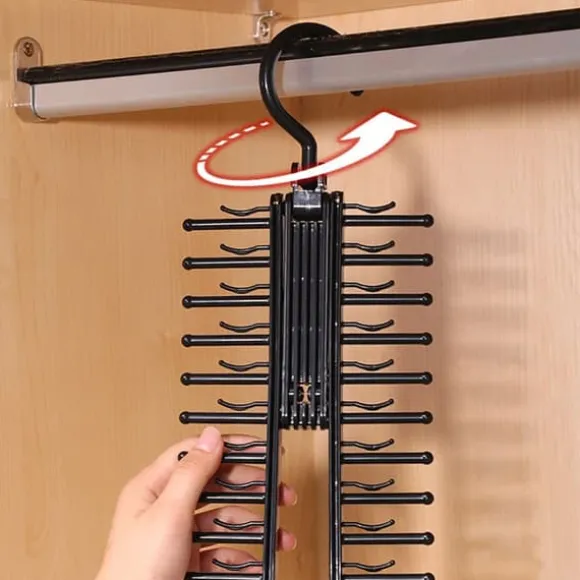 Denna svarta galge för slipsar och bälten kan lagra upp till 20 slipsar eller bälten och hjälper dig att spara plats samt hålla ordning. Den roterar 360 grader för enkel åtkomst och flexibel användning.