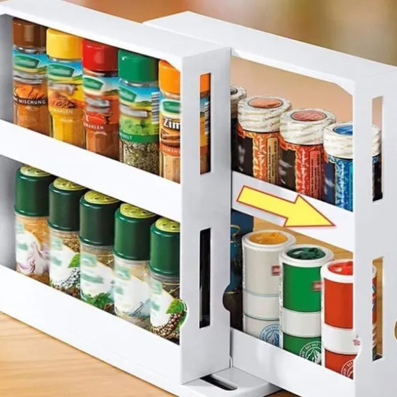 Stor kapacitet: Rymmer upp till 20 burkar. Perfekt för att organisera skåp, bänkar och bord.