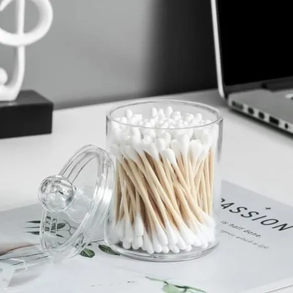 Burkarna är lätta att hantera och förvara, vilket gör dem idealiska för badrumsartiklar, smink, kontorsmaterial eller köksredskap. Perfekt för att hålla ordning i badrummet, på skrivbordet eller i köket.