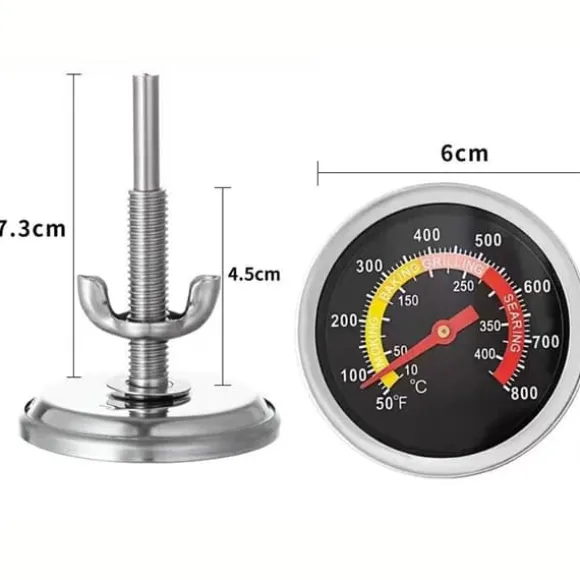 Den stora 2 3/8″ (ca 6 cm) ratten gör det enkelt att läsa och bedöma temperaturen på maten. Stammen är 2 7/8″ (ca 7,3 cm) lång. -