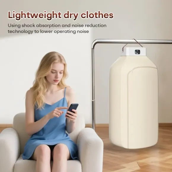 Tyst fjärrstyrning: Våra bärbara torktumlare arbetar tyst och säkerställer en lugn miljö även under torkningsprocessen.