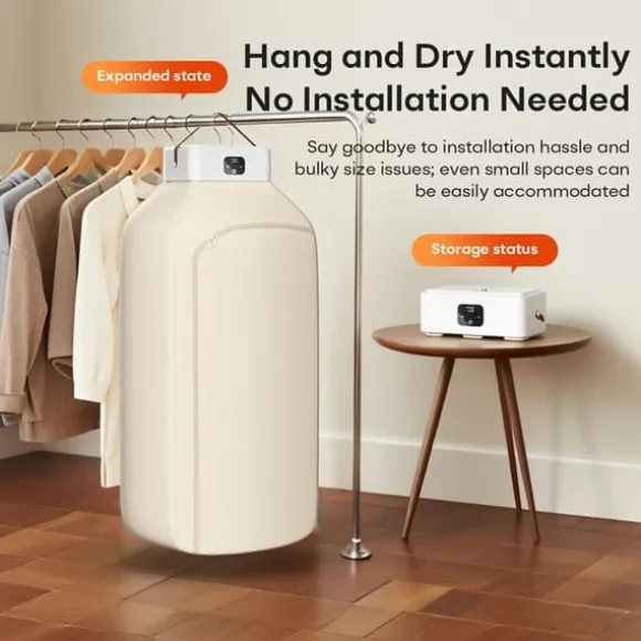 Kostnadseffektivt: Våra portabla torktumlare förbrukar mindre energi än traditionella torktumlare, vilket ger effektiv torkning utan att elräkningarna ökar. Njut av torr och fräsch tvätt utan att oroa dig för ökande kostnader.