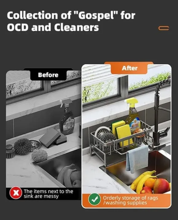 Mångsidighet: oavsett om du använder den för att hålla en svamp, en duk för tallrikar, en tvättmaskin eller till och med en dräneringsplugg från köksdisken, är dess mångsidighet något du kommer att älska omedelbart