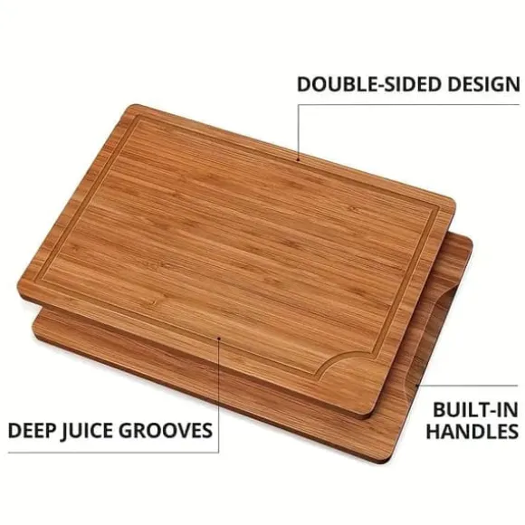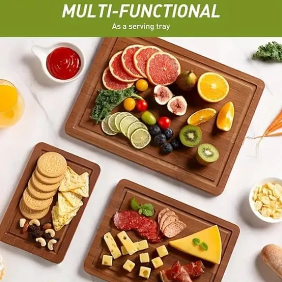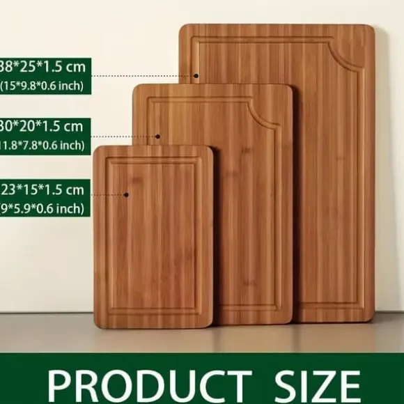 Upptäck våra högkvalitativa skärbrädor i bambu – ett praktiskt och stilrent tillskott till varje kök. Det här 3-pack-setet med tjocka, robusta träskärbrädor är designat för att möta alla dina behov i matlagningen, från kött och grönsaker till frukt och pizza.
