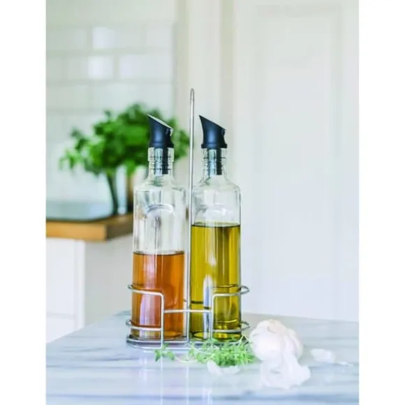 Ställ fram vinäger och olja på matbordet eller köksbänken i det vackra olja & vinägersetet Olive. De väldesignade korkarna gör att det rinner en lagom stråle för sallader och tilltugg.