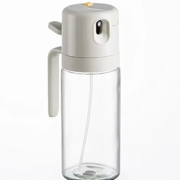 Den ergonomiska spraydesignen ger en fin och jämn dimma, vilket är idealiskt för stekning, grillning eller salladsdressingar. Den grå färgen och de robusta materialen gör flaskan till en elegant och hållbar lösning för ditt kök.