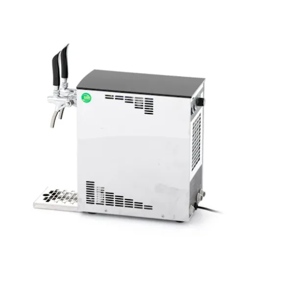 PYGMY 25/K EXCLUSIVE Öltapp, ölkylare, ölmaskin, öl dispenser, ölautomat, öltappingssystem med luftkompressorn är avsedd för professionell kylning och utmatning av utmärkt kylda öl för användning lämplig för privat bruk tap kapacitet 20-25 l/h Den termiska blocket är redan efter 2-4 minuter Färdig för användning kylning slingor: 2 x 8 meter rostfritt stål Den moderna och robust konstruktion garanterar lång livslängd och enkel transport kylteknik är genom 45% mer effektiv exklusiva kranar Techn. Detaljer: 8,1 PS den integrerade mini luftkompressorn är utrustad med ett molekylärfilter och luftsystemet är helt automatiskt. använt material uppfyller alla hygienkrav och garanterar en lång livslängd för utrustning. canopy ingår du kommer att kräva följande tillbehör: 2 x öl slang John Guest hela artikeln 443.861 2x. tryckluftsslang komplett John Gäst: artikel 443.864 1x Y-kontaktdon 5/16 artikel nr. 452.525 2x tapphuvud