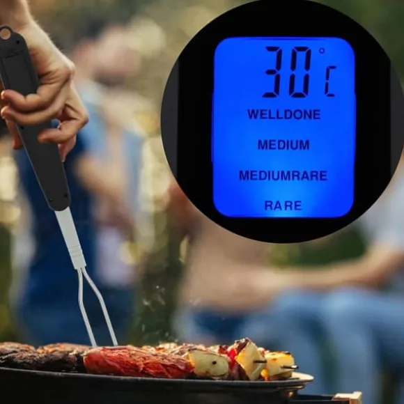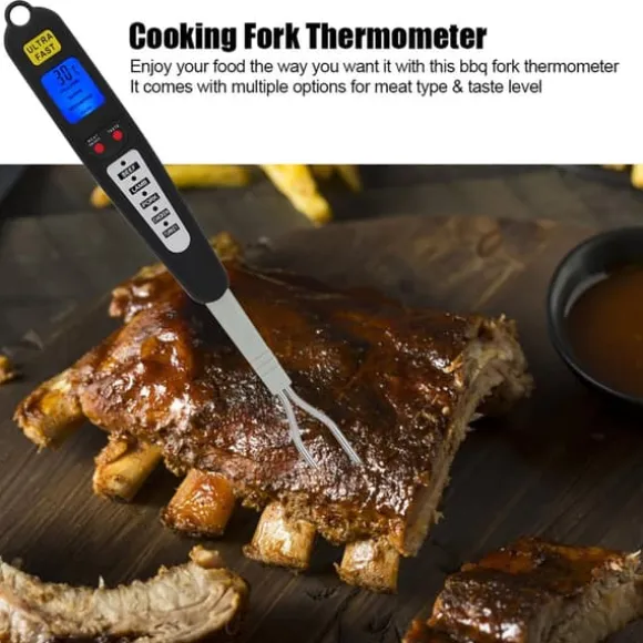 Njut av din mat precis som du vill ha den med denna BBQ-gaffeltermometer, som kommer med flera alternativ för kötttyp och smaknivå.