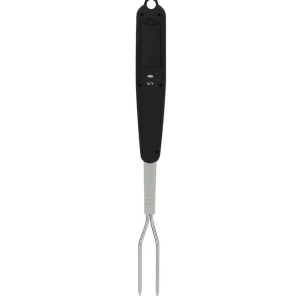 Med dubbla prober i rostfritt stål är denna termometer lätt att rengöra med en varm trasa och rostar aldrig. Det komfortabla handtaget och gaffeldesignen säkerställer att dina händer är säkra från eld och värme samtidigt som du kan gå djupt in i maten.