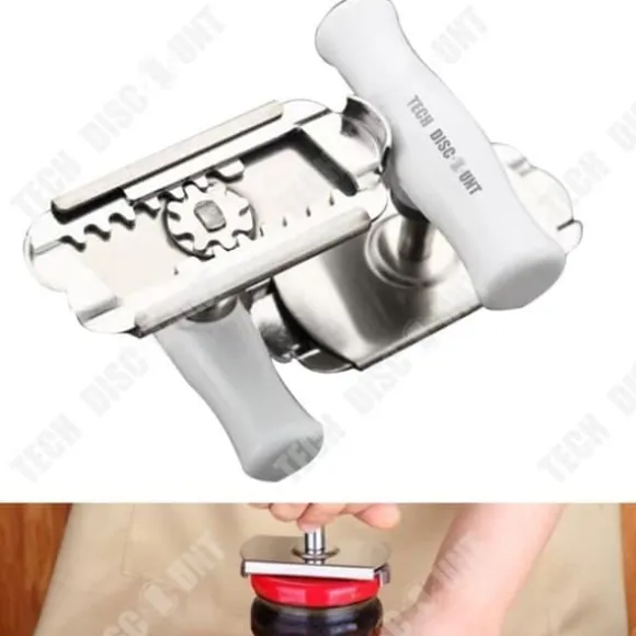 Automatisk burköppnare i rostfritt stål, dimensioner 7.5 x 4 cm, idealisk för alla typer av lock. Lätt (0.125 kg) och lättanvänd, den förenklar öppningen av burkar i ditt kök. Perfekt för hushåll, restauranger och barer.