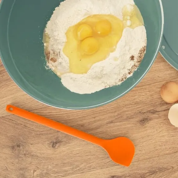 ✅ SILIKON – Tillverkad av orange silikon av högsta kvalitet, motståndskraftig mot temperaturer från -40°C till 220°C. Det finns en metallförstärkning inuti skeden för att bibehålla lämplig styvhet.