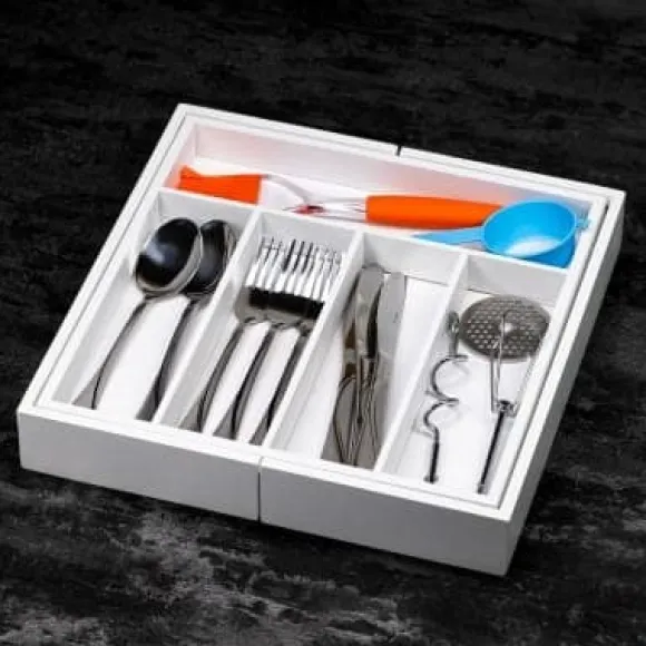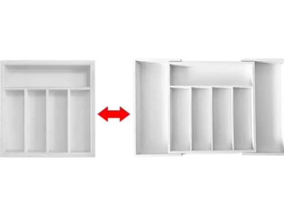 – Justerbar låda för bestick, knivar och kökstillbehör.