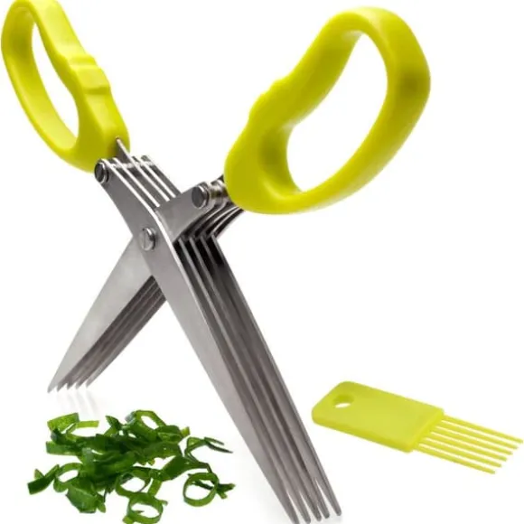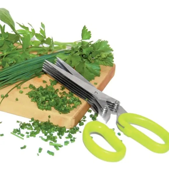 Kökssax för exakt skärning av örter. Tillverkad av slitstarka material. Extremt användbar i alla kök. De är perfekta för att snabbt och bekvämt hacka örter i olika tjocklekar. Fem blad möjliggör fem gånger snabbare skärning av örter som gräslök, persilja, timjan, rosmarin och mynta. Örtsax underlättar och påskyndar tillagningsprocessen, samtidigt som den möjliggör exakt och estetisk beredning av ingredienser.