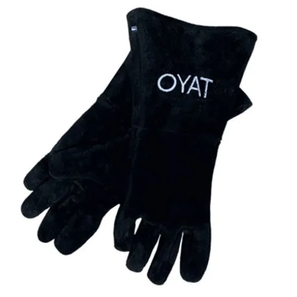 Värmebeständiga BBQ-handskar från OYAT. Ge dig själv ett effektivt skydd mot värme med våra läderhandskar för höga temperaturer, perfekta för att hantera stockar och tillbehör på ett säkert sätt. Tillverkade av högkvalitativ mocka, erbjuder de pålitligt skydd mot värme, oavsett om du hanterar klumpar, tillbehör för eldkorgar eller justerar grillarna under tillagningen. Tack vare den 15 cm långa manschetten ger dessa handskar maximal täckning av händer och underarmar, vilket gör att du kan arbeta säkert i närheten av lågflamma och intensiv värme. Deras flexibla och hållbara design garanterar komfort och lång livslängd. Egenskaper: Storlek: 10 (standardstorlek) Dimensioner: 36 x 11 centimeter Material: Mocka Färg: Svart Totalvikt: 350 gram Grilltillbehör: Ett måste för varje grillentusiast. Pålitligt märke: Originalprodukt från OYAT, garanti för kvalitet och hållbarhet.