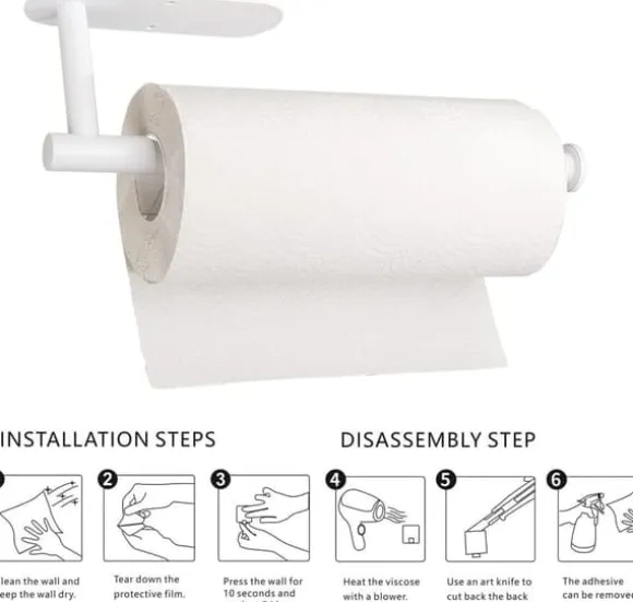 [Funktioner]: Pappershanddukshållare för underskåp: Pappershanddukshållaren är tillverkad av rostfritt stål SUS 304, robust och hållbar, vattentät och rostbeständig. Den har god bärförmåga och fäster bra, så den faller inte av lätt. [Användningsområden]: Pappershanddukshållaren kan användas för att förvara handdukar, pappershandduksrullar, plastfolie, pappershanddukshållare för underskåp och allt annat som kan hängas. [Tillämpliga platser]: Pappershanddukshållare kan användas runt skåp, på plana väggar, i badrum och på toalettväggar. [Installation: Direkthäftning eller borrning]: Ta bort skyddsfilmen från tejpen och placera pappershanddukshållaren på en slät yta. Borrning är också möjligt. [Mått och spetsar]: Pappershanddukshållarens längd: 33,6 cm. Ej lämplig för tapeter eller målade väggar.Förpackningens innehåll: