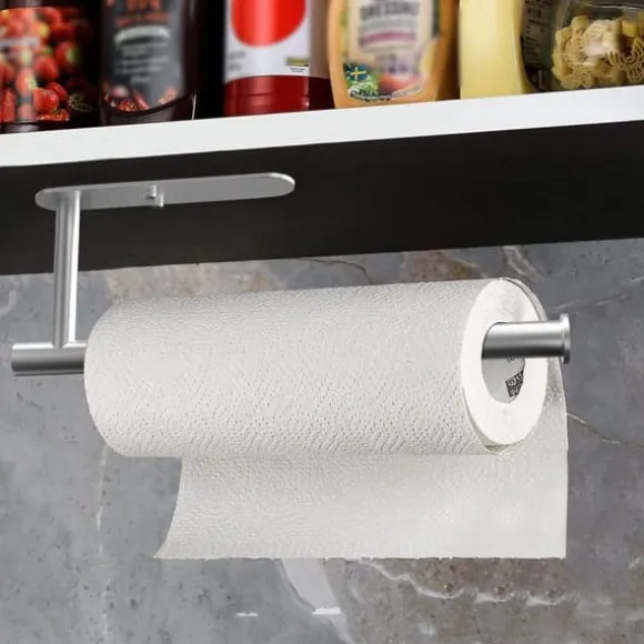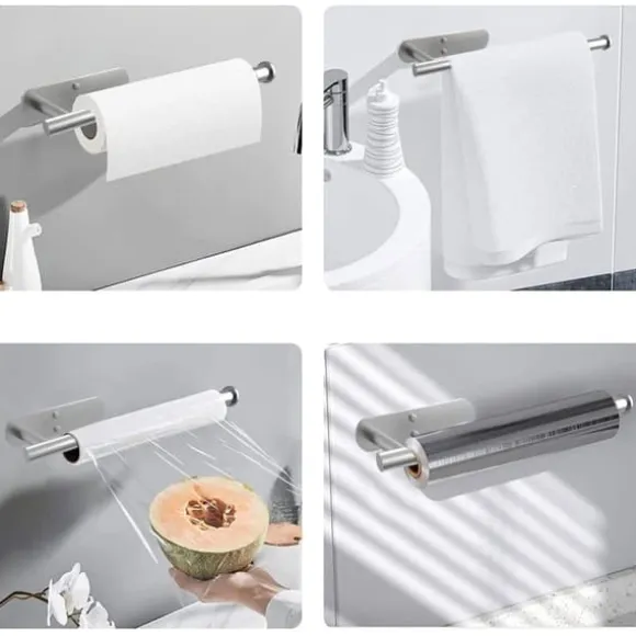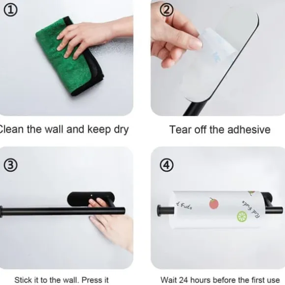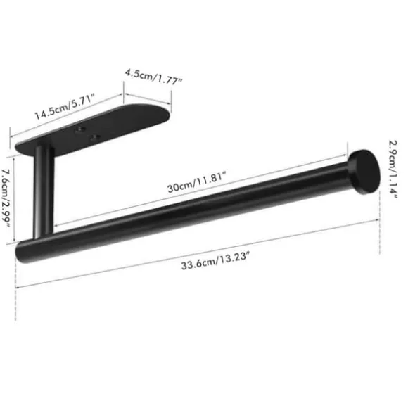 2、 Lämplig storlek: Avstånd från väggen: 3” (9/10 tum), 13*3*5,9 tum. Användningsomfånget är handdukar, pappershandduksrullar, plastfolie och pappershandduksställ under skåp. Den kan även användas för att hänga upp köksredskap eller andra saker du vill ha.
