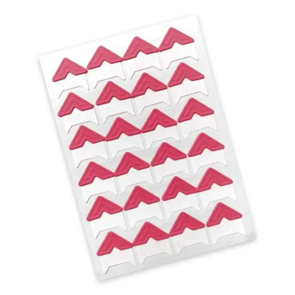 - 24 självhäftande hörnplacerade på ett ark, tillräckligt för att rama in upp till6 foton(fyra hörn per foto).