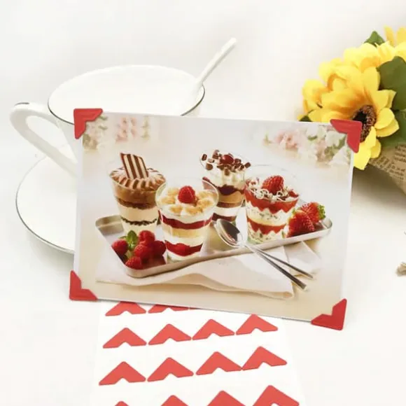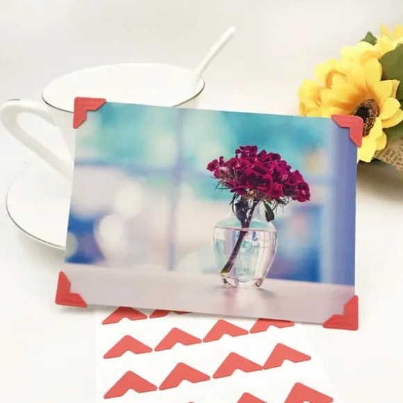 Hörnen är perfekta förklippboksalbum, gör-det-själv-projekt och familjekrönikor. De gör att du enkelt kan infoga och ersätta foton utan risk att skada dem. Rödsärskilt lämplig förtema-, romantiska eller presentalbum, som betonar känslor och minnens unika karaktär.
