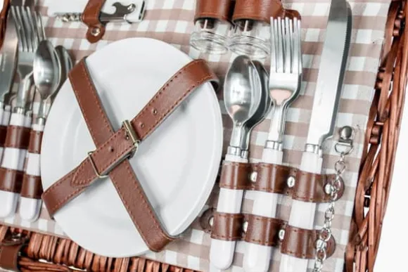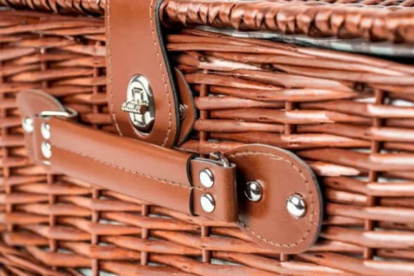 PICKNIKKORG 22 DELAR – 4 PERSONER En picknickkorg av naturligt flätat material. Picknickkorgen som erbjuds är helt handgjord, därför har vi en garanti för kvalitet och unikhet. Picknickkorgen är fin och rymlig och vi kan enkelt förvara picknicksaker för 4 personer i den. På grund av den optimala storleken är korgen också behändig och vi kan ta den nästan överallt. Flätningskorgen har ett spänne med spänne och ett läderhandtag (eco-läder) för enkel transport. Inuti är flätad korg fodrad med ett vackert rutigt material som säkerställer täthet och förbättrar estetiken. Dessutom har picknickkorgen fästen på insidan som säkrar porslin under transport. Högkvalitativt stålbestick med plasthandtag ger elegans.