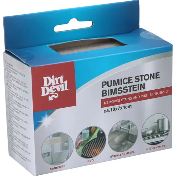 Denna pimpsten från Dirt Devil är ett kraftfullt men skonsamt rengöringsverktyg som enkelt tar bort rost, kalkavlagringar och andra hårt sittande fläckar utan att skada ytan. Med sina mått på 10 x 7 x 4 cm ligger stenen bra i handen och är lätt att använda även på trånga eller svåråtkomliga ställen.