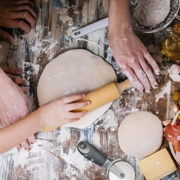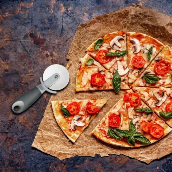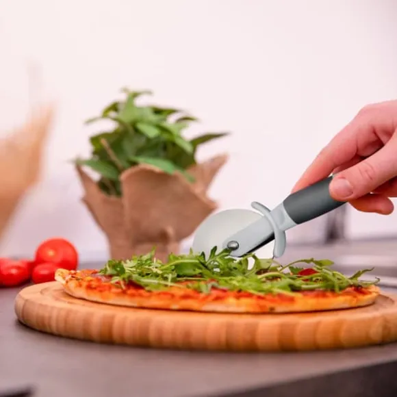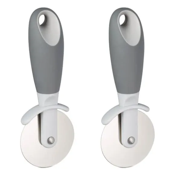 Detta set med två pizzaskärare är perfekt för att enkelt skära igenom alla typer av pizzabottnar, från tunna och krispiga till tjocka och luftiga. De ergonomiska, halkfria handtagen säkerställer bekväm användning och effektiv kraftöverföring, medan bladen i rostfritt stål gör dem hållbara och lätta att rengöra. Dessa mångsidiga skärare kan även användas för att skära rå deg vid bakning och har ett praktiskt hål för upphängning.
