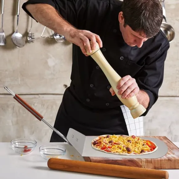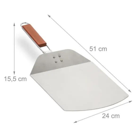 Skjut enkelt in och ut pizzor, bröd eller tarte flambée ur ugnen med denna praktiska pizzaspade, designad för både hemmabruk och professionellt bruk. Den breda, platta skopan och det fällbara handtaget i trä gör den lätt att hantera och förvara, medan det långa handtaget håller dina händer säkert borta från värmen.