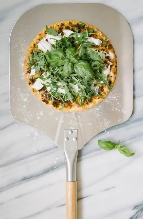 Pizzaspade/Bakspade ifrån Dorre med avtagbart längre trä handtag, själva spaden är i metall.