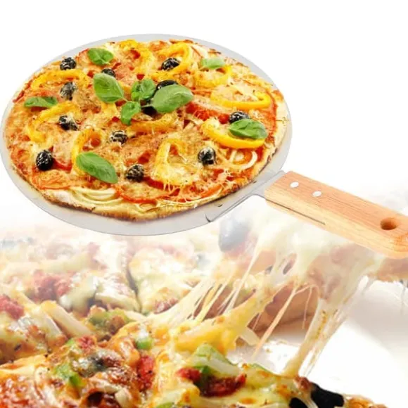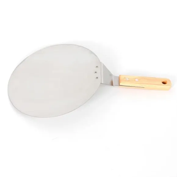 Stadig pizzaspade i rostfritt stål – säker hantering från ugn till tallrik Denna silverfärgade pizzaspade i rostfritt stål gör det enkelt att lyfta, föra och servera pizza, bröd, kakor och pajer. Den släta, robusta ytan låter pizzan glida smidigt utan att förstöra toppingen.