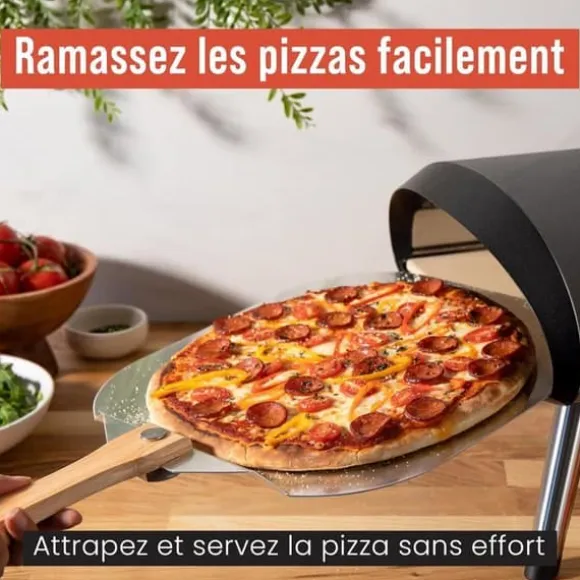 Pizzaspaden Chef Pomodoro mäter 36,6 cm x 40,6 cm och är tillverkad av kommersiell kvalitetsaluminium med ett vikbart trähandtag. Perfekt för att överföra pizzor, bröd och bakverk, skyddar den dina händer från höga temperaturer. Dess kompakta design möjliggör enkel förvaring, perfekt för hemmet eller restauranger. Kompatibel med de flesta pizzaugnar.
