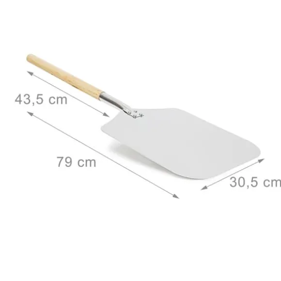 Skjut enkelt in och ut pizzor, bröd eller kakor ur ugnen med denna robusta pizzaspade med en bred, fyrkantig metallskopa. Den tunna kanten gör det lätt att lyfta maten, medan det långa handtaget i trä ger ett bekvämt och säkert grepp för säker hantering. Uppnå professionella resultat hemma med detta mångsidiga köksredskap.