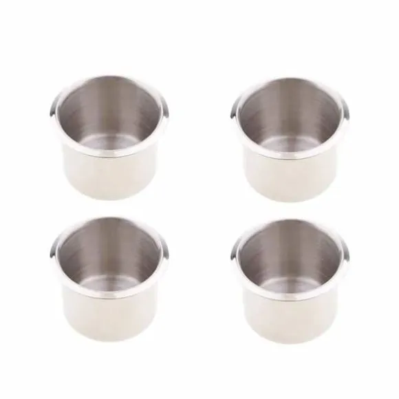 idealisk för husvagnar, båtar, släpvagnar och husbilar. detta set med 4 koppställ i rostfritt stål gör att du kan hålla dina drycker stabila och inom räckhåll. den släta ytan gör rengöringen enkel. mått: 68 x 55 mm.