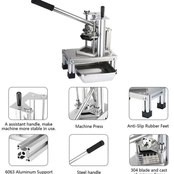 - mångsidig skärverktyg: designat för potatis, frukter och grönsaker med utbytbara blad för olika skärstorlekar. erbjuder restaurangkvalitativ skärning för olika matvaror, vilket gör det till ett mångsidigt köksessentiellt verktyg.