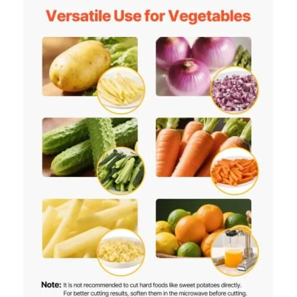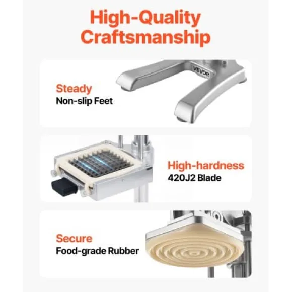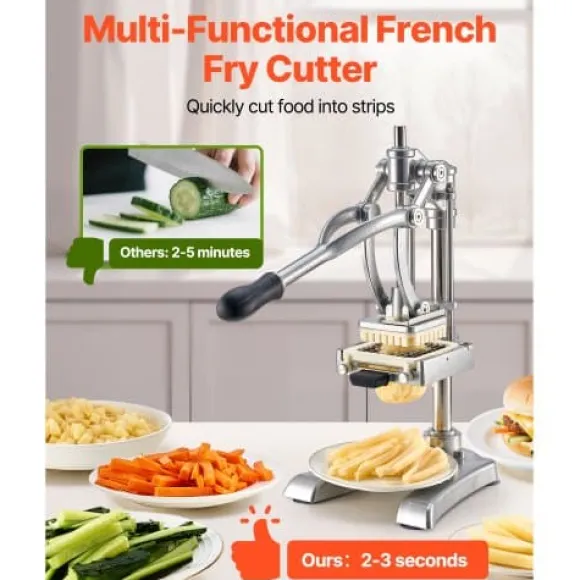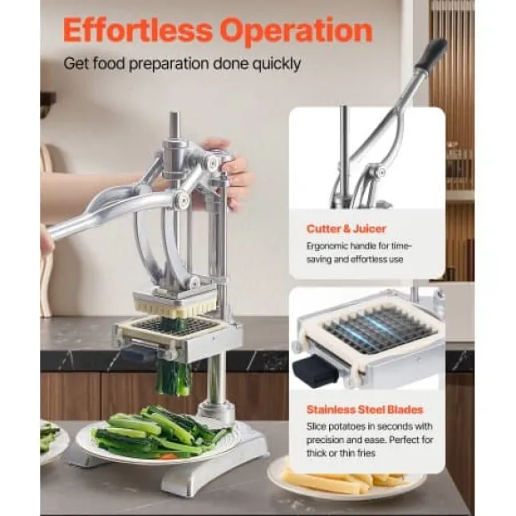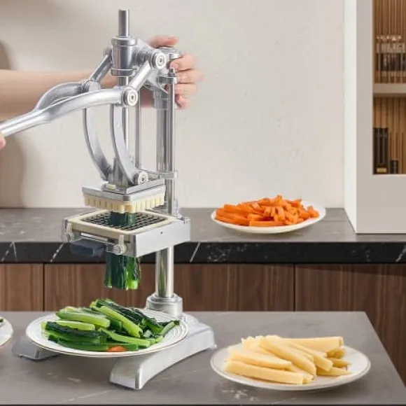 Denna kommersiella pommes frites-skärare är utformad för effektiv och mångsidig skivning av potatis, grönsaker och frukt, vilket gör den idealisk för både restaurang- och hemmakök. Med hållbara blad i rostfritt stål och en stabil, ergonomisk design säkerställer den snabba, säkra och jämna resultat samtidigt som den är lätt att rengöra. Dess breda användningsområde och användarvänliga hantering hjälper till att minska förberedelsetiden och öka kökets produktivitet.