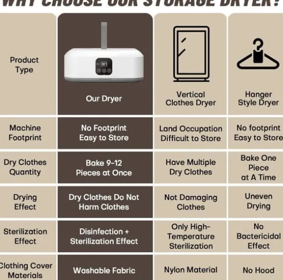 Denna portabla torktumlare kombinerar bekvämlighet och effektivitet med modern UV-teknik. Idealisk för små hem eller camping. Beställ nu för enkel och hygienisk klädtorkning!