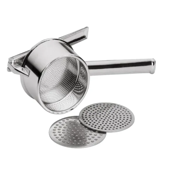 Potatispress i 18/10 stål med 2 plattor för olika grovlekar. Alla delar går i diskmaskin. Perfekt för pressad potatis, potatismos eller potatispuré.