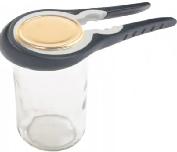 Burk- och flasköppnare har två klämfält – för små och bredare korkar på flaskor och burkar. Öppnaren har